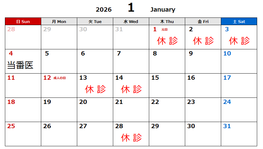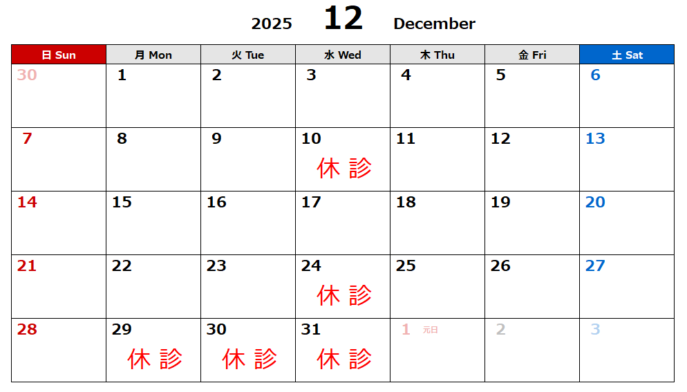 ※令和5年1月より第2・第4水曜日は休診となります。※
